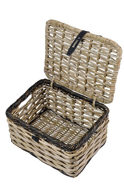 Basil Dijon L/ luxe rotan fietsmand/ deksel met sluiting/ excl. bevestigingsmateriaal/ grijs/zwart