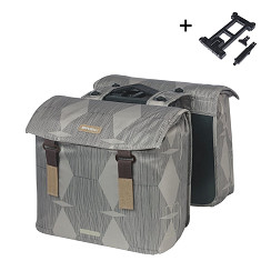 Basil Elegance dubbele fietstas MIK, Choose Green label, gerecycled PET polyester, geheel gevoerd, waterkerende vouwsluiting, geschikt voor MIK systeemdragers/carrierplates, incl.MIK Adapterplate, reflectie op alle zijden, 40-49L, chateau taupe